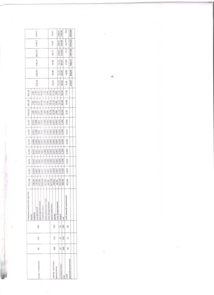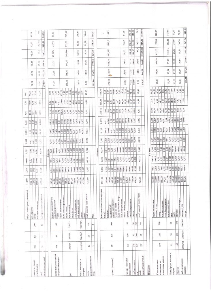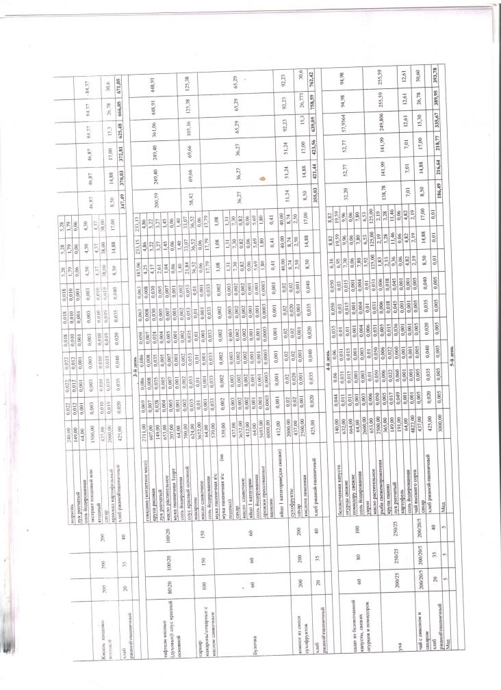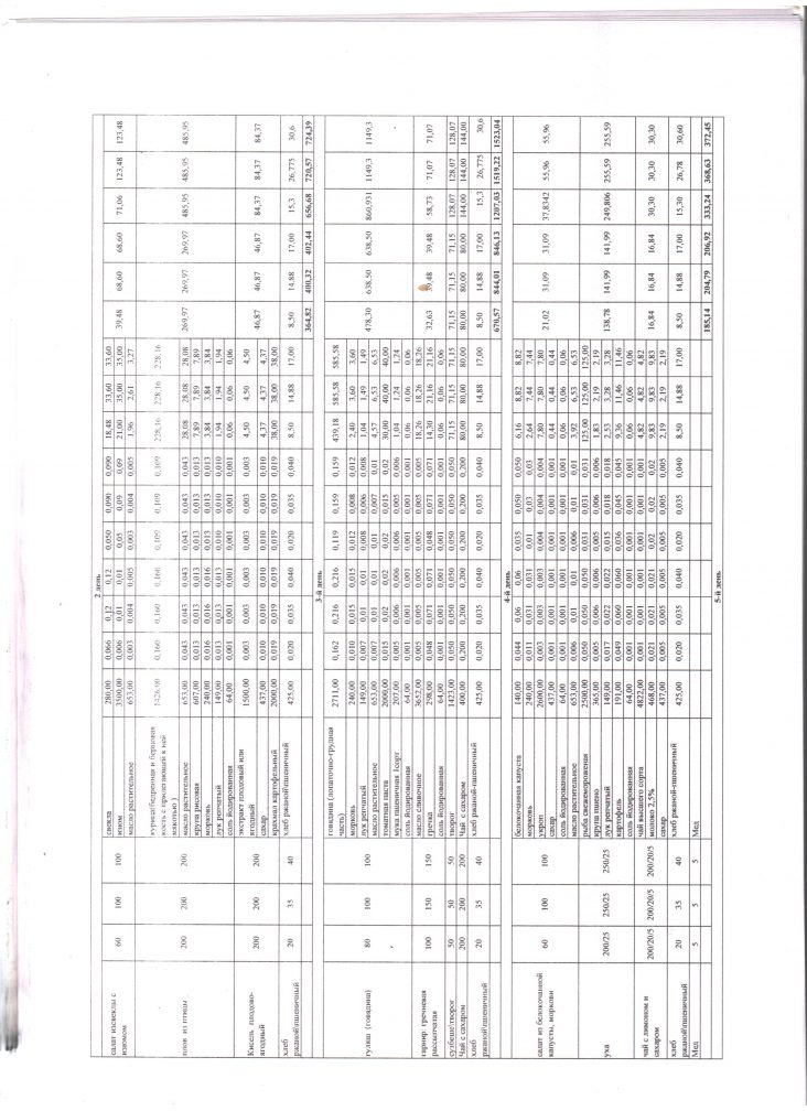 Расчет стоимости рациона питания |